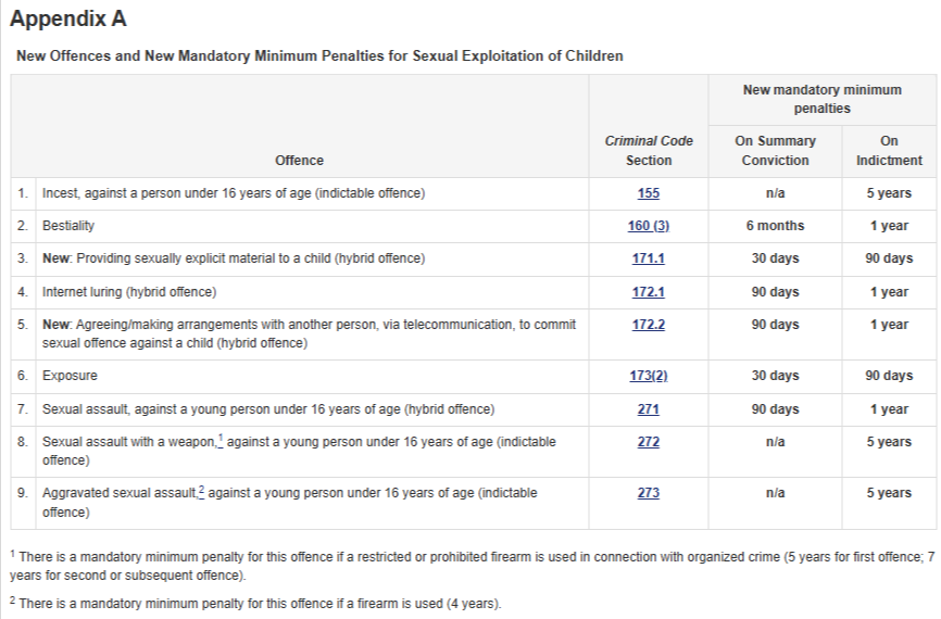 - Put child predators behind bars: Strengthen mandatory minimum penalties of imprisonment for predators who offend (including possession of child sexual abuse and exploitation material), and keep them imprisoned without bail to protect communities and prevent further public harm.